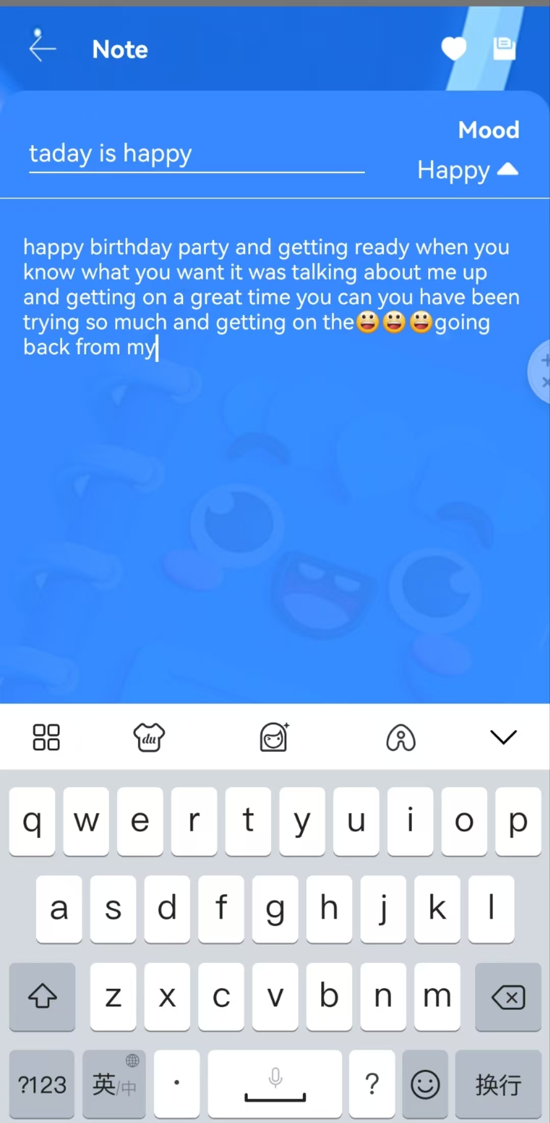 Add and modify notes, select emotions.